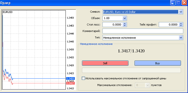 Торгуя с помощью торгового приложения MetaTrader4, Вы можете осуществлять контроль за проскальзыванием, поставив галочку напротив функции “Использовать максимальное отклонение от запрошенной цены” в окне “Ордер”. Если галочка не установлена, банк будет выполнять ордер с любым положительным проскальзыванием и отклонять любое проскальзывание в минус. Если галочка установлена, значит, функция “Максимальное отклонение в пунктах” включена. В поле ниже вы можете установить величину допустимого отклонения, которую вы готовы принять. Например, если вы установите проскальзывание с «Максимальным отклонением» в 5 пунктов, и рынок совершит движение на 6 пунктов не в вашу пользу, Ордер будет отклонен, так как он не будет соответствовать заданному вами параметру. Однако, если рынок развернется на 5 пунктов в вашу пользу, ваш Ордер будет исполнен.